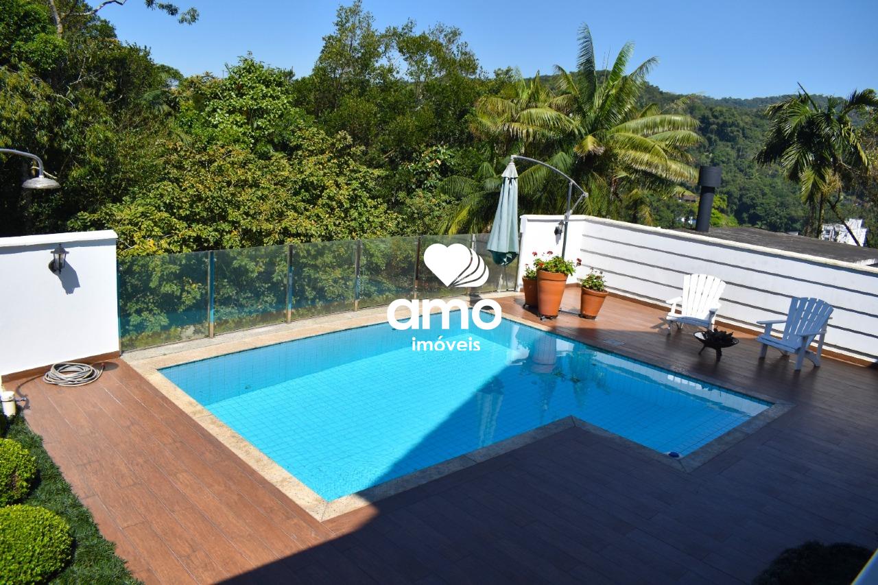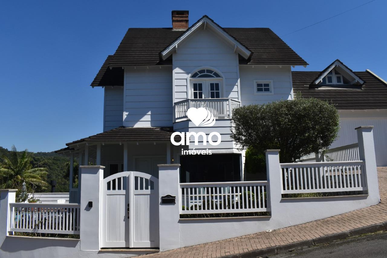 Venda de uma casa residencial mobiliada com 3 suítes (3 quartos) e 4 banheiros, em terreno de 480 m² e área interna de 350 m², localizada em Brusque, Bairro São Pedro.
